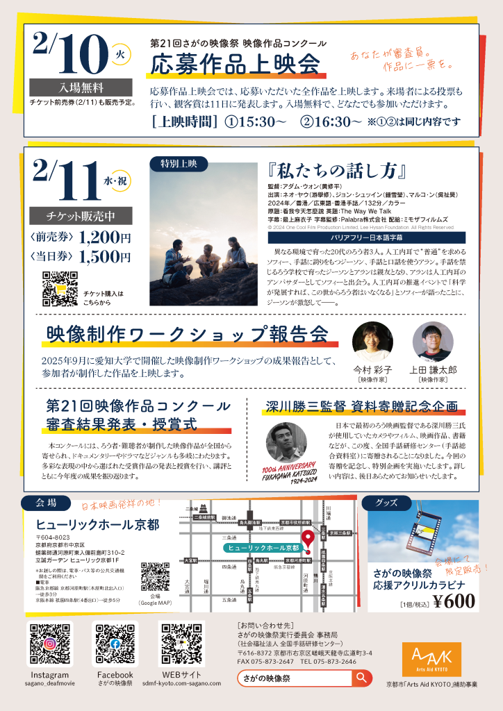 さがの映像祭では、ろう者・難聴者をはじめ、どなたでも参加しやすい環境づくりを大切にしています。